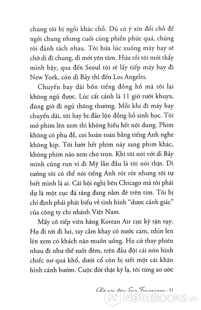 Đọc "Chờ em đến San Francisco", bạn đọc sẽ một lần nữa, được trở lại với Sài Gòn xưa, với những con người xưa và những tình cảm thiêng liêng một khi đã bước vào thì rất khó dể thoát ra...Một kết thúc mở cho cuộc tình giữa một cô gái với 2 chàng trai, cô sẽ lựa chọn ai?...