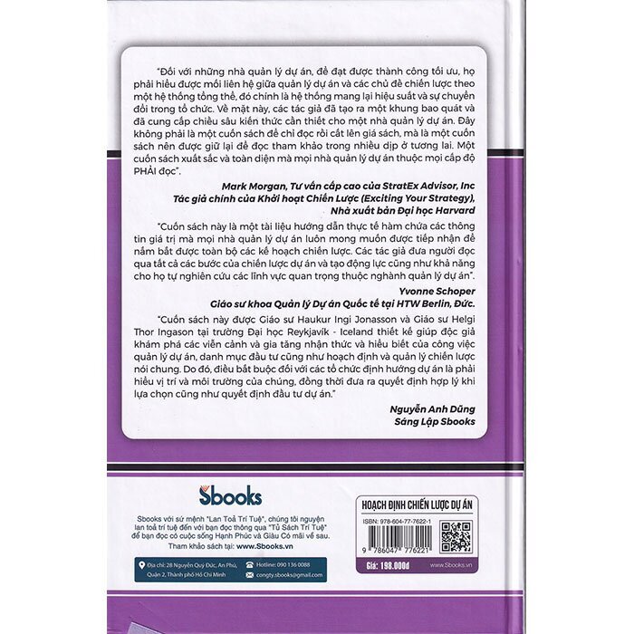 Quan trọng nhất, chúng tôi hy vọng rằng quá trình đọc cuốn sách này sẽ kích thích khả năng tư duy sáng tạo, tư duy đạo đức và phê phán của bạn. Đồng thời, cung cấp cho bạn - một nhà lãnh đạo của hiện tại và/ hoặc trong tương lai không xa, một loạt những hiểu biết thực tiễn về chủ đề tâm lý học và chủ nghĩa nhân văn thực tế. Cuốn sách “Hoạch Định Chiến Lược Dự Án” tập trung vào quá trình hoạch định chiến lược để xác định tầm nhìn mong muốn cho doanh nghiệp và xây dựng kế hoạch hành động chiến lược liên quan tới dự án, từ đó đề xuất các phương tiện thực tế để hiện thực hóa tầm nhìn này.