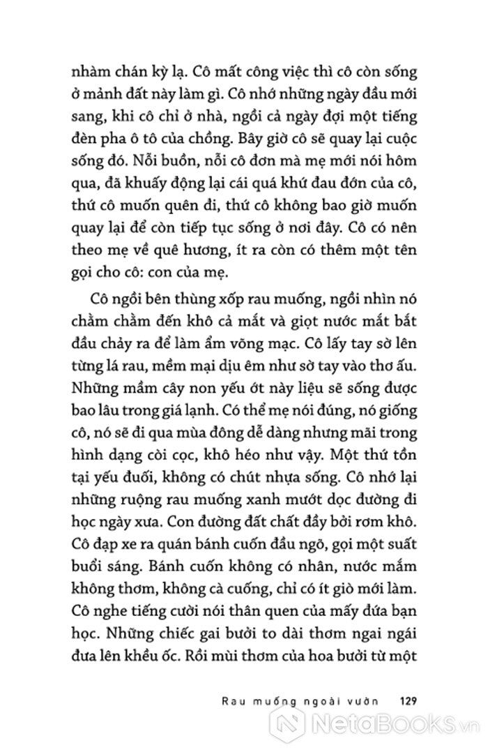 Một tác phẩm với đề tài chất chứa nhiều suy tư mà vẫn tươi sáng, hồn hậu bởi tất cả được nhìn qua lăng kính của thứ tình cảm bền vững: tình thân và tình quê. Cái hay của tác giả là dù không có từ ngữ cụ thể nào nhắc đến quê hương, nhân vật nào cũng sinh sống ở một vùng đất xa xôi nào đó vậy mà tình yêu quê hương vẫn quyện chặt đâu đó giữa những khoảng lặng của từng câu chữ.