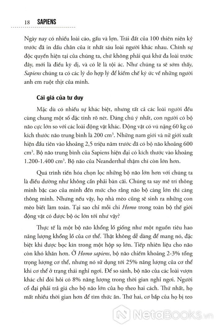 “Sapiens tìm câu trả lời cho vấn đề lớn nhất của lịch sử cũng như của thế giới hiện đại, và nó được viết bằng một thứ ngôn ngữ tuyệt vời khiến người ta không thể quên được” - Jared Diamond, tác giả cuốn sách đoạt giải Pulitzer Súng, vi trùng và thép