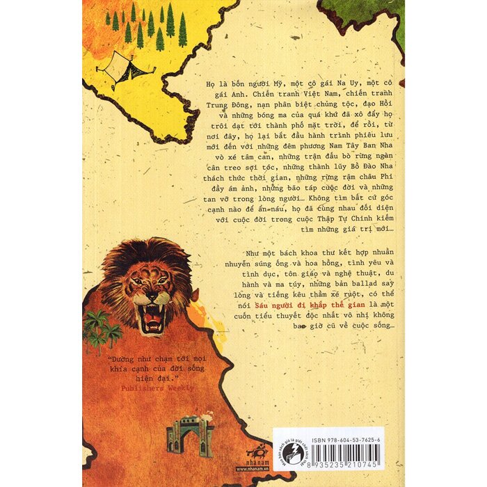 Như một bách khoa thư kết hợp nhuần nhuyễn súng ống và hoa hồng, tình yêu và tình dục, tôn giáo và nghệ thuật, du hành và ma túy, những bản ballad say lòng và tiếng kêu thầm xé ruột, có thể nói Sáu người đi khắp thế gian là một cuốn tiểu thuyết độc nhất vô nhị không bao giờ cũ về cuộc sống…