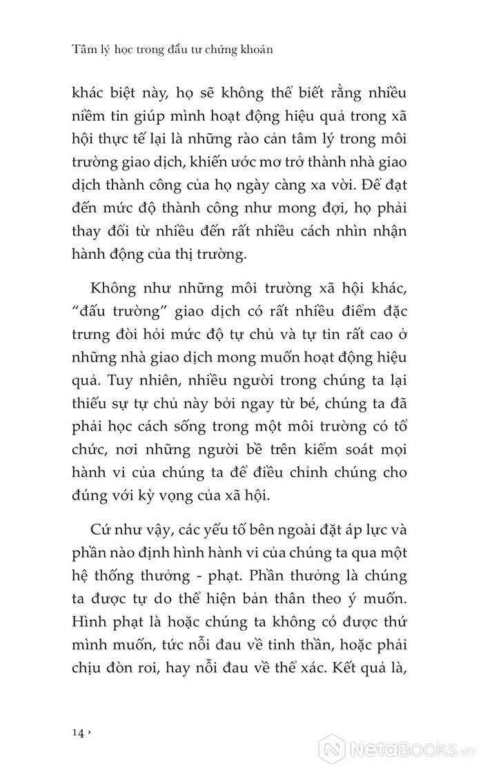 Là tác phẩm tiên phong trong lĩnh vực tâm lý giao dịch, “Tâm lý học trong đầu tư chứng khoán” là bản hướng dẫn cặn kẽ giúp bạn nắm bắt được các yếu tố cần thiết để trở thành một nhà giao dịch chứng khoán hoặc hợp đồng tương lai thành công, từ đó có thể thích ứng hiệu quả với những đặc tính tâm lý bất thường của thế giới giao dịch. Ngay từ khi mới được ra mắt, cuốn sách đã được xem là tác phẩm kinh điển mà bất cứ ai muốn thành công trong thị trường giao dịch đều phải đọc, và giá trị của nó vẫn vẹn nguyên cho đến ngày nay.”