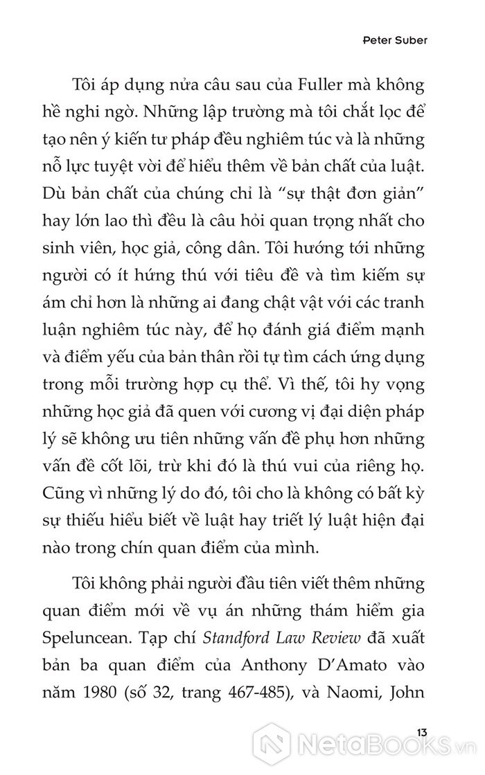 Là Tiến sĩ (Ph.D) và Tiến sĩ Luật (J.D), đồng thời là giáo sư triết học ở Đại học Earlham. Peter Suber là một học giả và tác giả người Mỹ, được biết đến với các công trình nghiên cứu sâu về triết học pháp luật, đặc biệt là những tranh luận về chủ nghĩa thực chứng pháp lý và đạo đức trong luật. Ông có khả năng biến những vấn đề pháp lý phức tạp thành các phân tích mạch lạc, gần gũi mà vẫn sắc bén, giúp người đọc dễ dàng tiếp cận và tự mình đào sâu những câu hỏi cốt lõi của công lý và pháp luật trong xã hội hiện đại. Ông là tác giả cuốn sách nghiên cứu về các vấn đề tham chiếu trong ngành luật đầu tiên – The paradox of Self-Amendement (Tạm dịch: Chiếc hộp Paradox cho việc tự cải thiện bản thân).