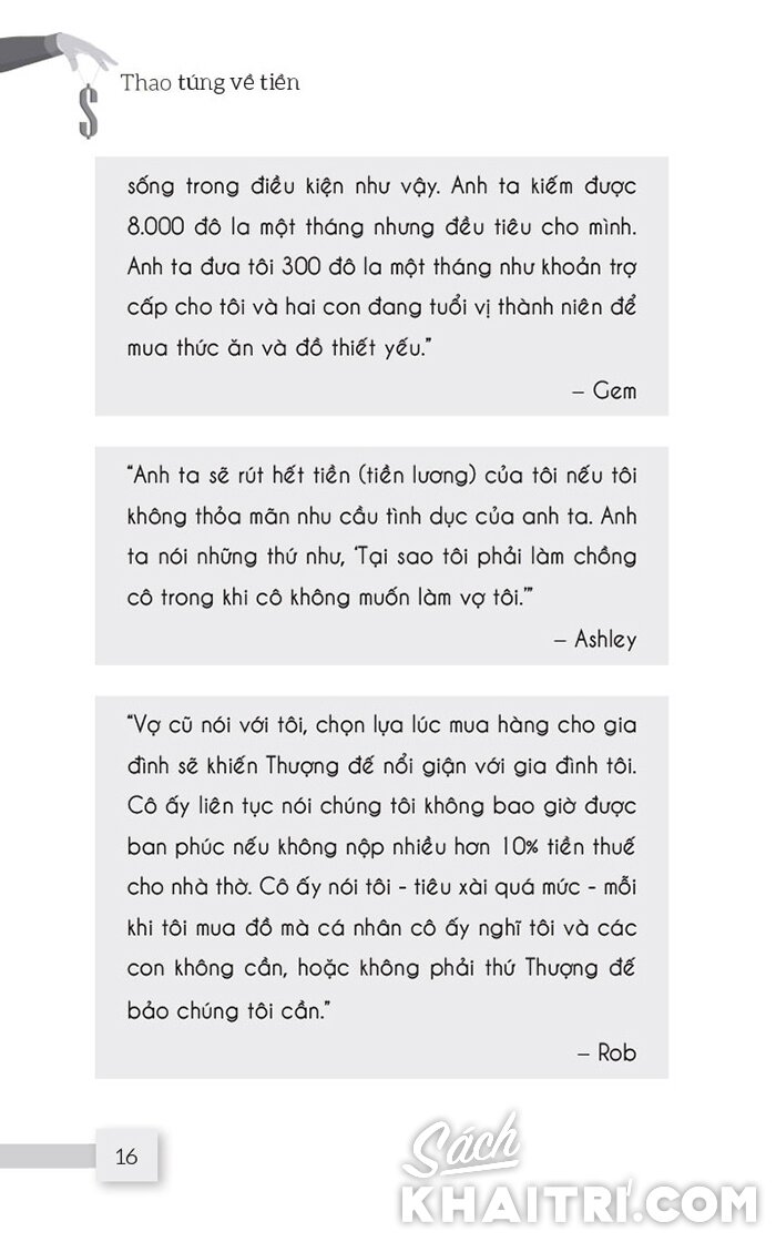 Cuốn sách “Thao túng về tiền” sẽ cho bạn cơ hội vén tấm màn che đậy và thấy được cuộc sống của những người bị tổn hại tài chính do những người thân thiết với họ gây ra. Nó cũng giúp bạn có được cái nhìn cụ thể và sâu sắc hơn về lạm dụng tài chính để nhận biết sớm, có hành động dứt khoát giúp bạn thoát khỏi hố sâu tâm lý và chữa lành những tổn thương tiềm ẩn.