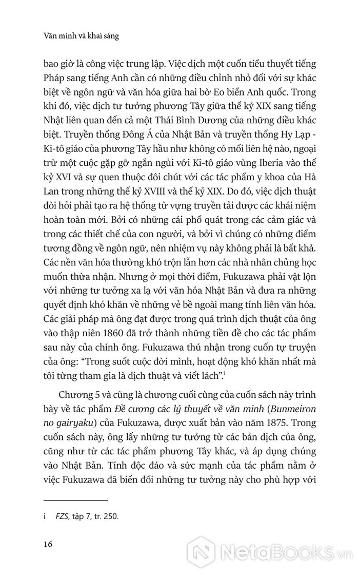 “Một cuốn sách quan trọng về nhà tư tưởng hàng đầu của Nhật Bản trong thế kỷ XIX. Để lần theo những nguồn gốc trong các tư tưởng của Fukuzawa và chỉ ra cho chúng ta rằng ông đã nhấn mạnh các khía cạnh cụ thể của tư tưởng phương Tây như thế nào và vì sao, Albert Craig đưa ra những nhận định sâu sắc và đầy xuất sắc về các áp lực kích thích sự thay đổi mà Fukuzawa đã thúc đẩy trong hành trình của Nhật Bản để đạt tới sự bình đẳng với phương Tây. Là công trình thành công một cách đầy ấn tượng, cuốn sách này là đóng góp nổi bật cho bộ môn lịch sử về giới trí thức và lịch sử Nhật Bản”. - Fred G. Notehelfer, Đại học California, Los Angeles