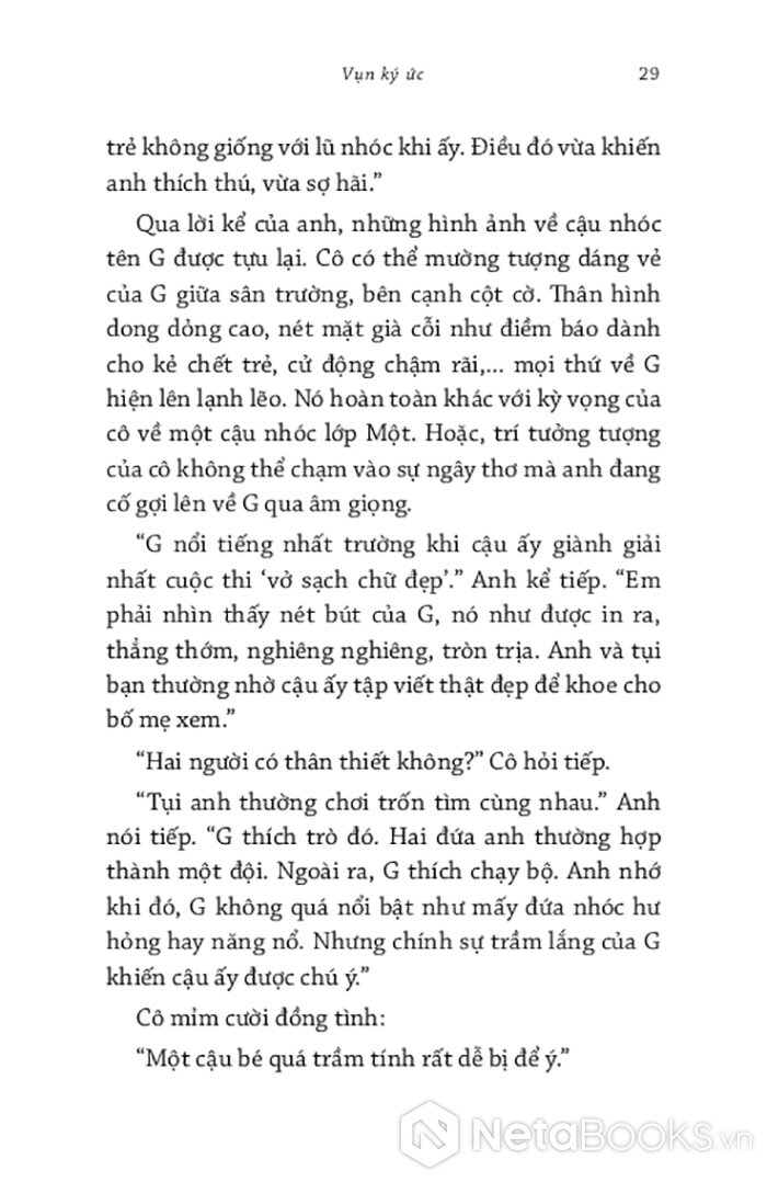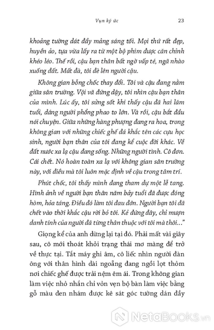 Không có quốc gia nào được gọi tên, các chương được cấu thành như một truyện ngắn, Vụn kí ức là cuộc truy vấn về ký ức, rằng ký ức có phải là thứ đứng yên theo thời gian, hay nó luôn chuyển động và làm thay đổi chúng ta theo cách mà chúng ta không ngờ tới?